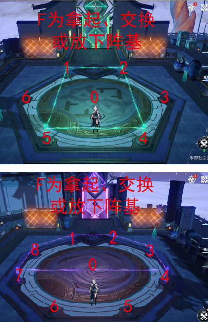 下两图分别为六边形和八边形地图的标记示例,相同形状地图均可通用。
