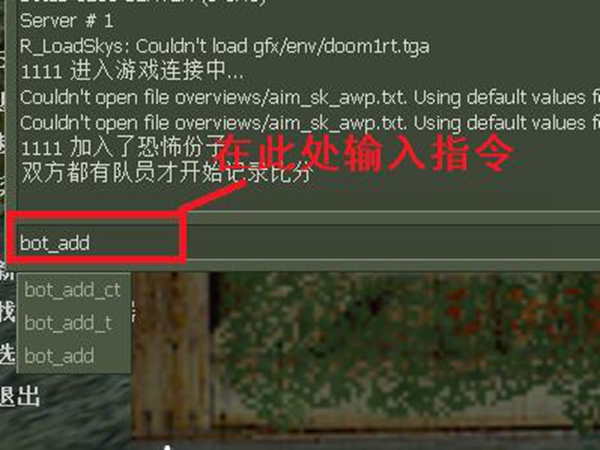 3、之后再在控制台栏中输入bot_add来添加机器人玩家,输入bot_add_ct添加反恐精英,输入bot_add_t添加恐怖分子;