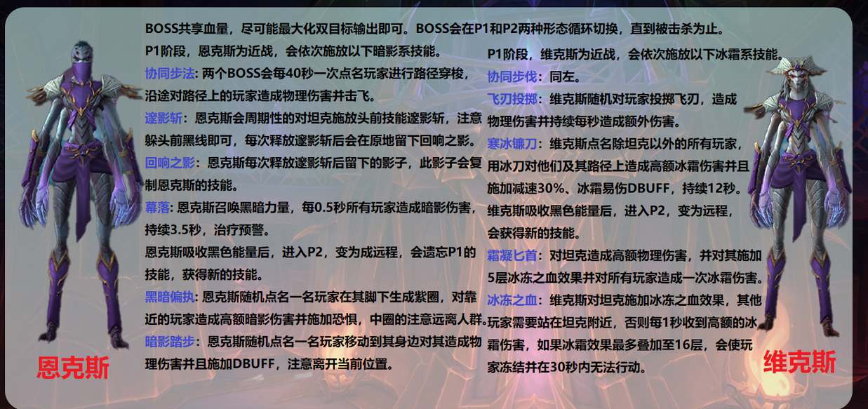 恩克斯的攻击会留下回响之影,在当前位置留下一滩紫水,下次施放冲击波时紫水的位置也会施放出一道冲击波,需要注意躲避。恩克斯每次施放紫圈时,紫水也会施放一个15码的紫圈,需要跑出这个范围。