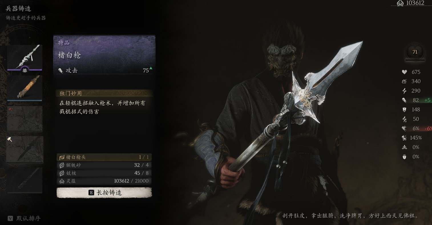 在初始牢房的隔壁与小张太子对话交任务,即可获得材料楮白枪头,然后通过土地庙或如意画轴中的寅虎可以铸造该武器。